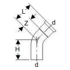 Γωνία 45° με SC 22 από ανοξείδωτο χάλυβα - μη διαβρωτικό / γυαλιστερόΣύνδεσμος για σωλήνες