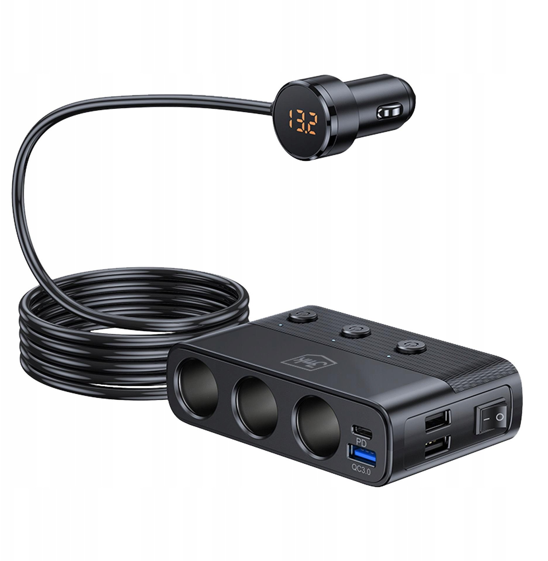 Ładowarka samochodowa, rozgałęźnik samochodowy 3mk Car Power Splitter 120W do pojazdów z gniazdem zapalniczki 12V / 24V 2x USB-A / 1x USB-A QC / 1x USB-C PD / 3x DC 12V - 24V. Energetyczne centrum Twojego samochodu. Masz dość walki o jedyne dostępne gniazdo zapalniczki podczas podróży? Z 3mk Car Power Splitter PD 120W™ ten problem znika. To nie jest zwykła ładowarka — to mobilna elektrownia do Twojego auta, która pozwala ładować aż 7 urządzeń jednocześnie. Idealna dla rodzin, ekip podróżujących i profesjonalistów pracujących w trasie. Niezależnie czy prowadzisz osobówkę z instalacją 12V, czy busa z systemem 24V – Car Power Splitter PD 120W™ dostarcza od 120W (przy 12V) do 240W mocy (przy 24V).