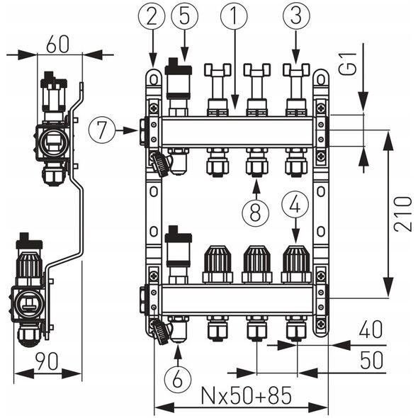 Διανομέας χάλυβα 9 δρόμων με θερμοστατική και ροή STD.FERRO // TG.F.ROZ.SN-RZP09S