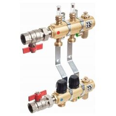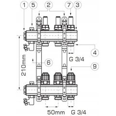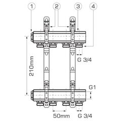 Διανομέας ορείχαλκου Kisan 1" για επιφανειακή θέρμανση και καλοριφέρ 2-κυκλικός με έξοδο για συνδέσμους G3/4" Eurokonus (KRPT 02.20.12)