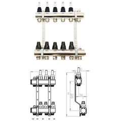 Διανομέας ορείχαλκου Perfexim 5 κυκλωμάτων PHA-107 5-κυκλωμάτων PN6 με ροόμετρα, ρυθμιστικές βαλβίδες και νίπλες, για επιφανειακή θέρμανση [1/1]
