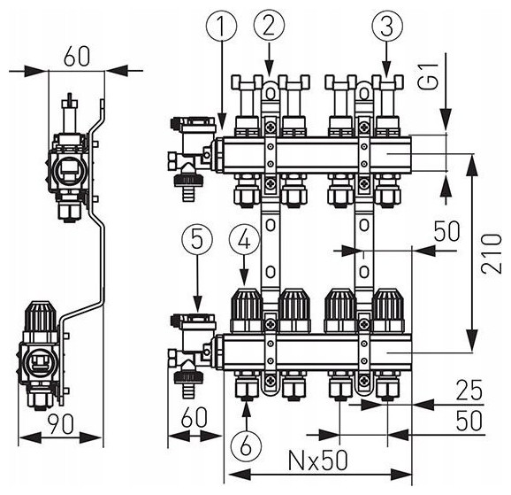 Διανομέας 1" 3-κυκλ. ανοξ. PEX Red