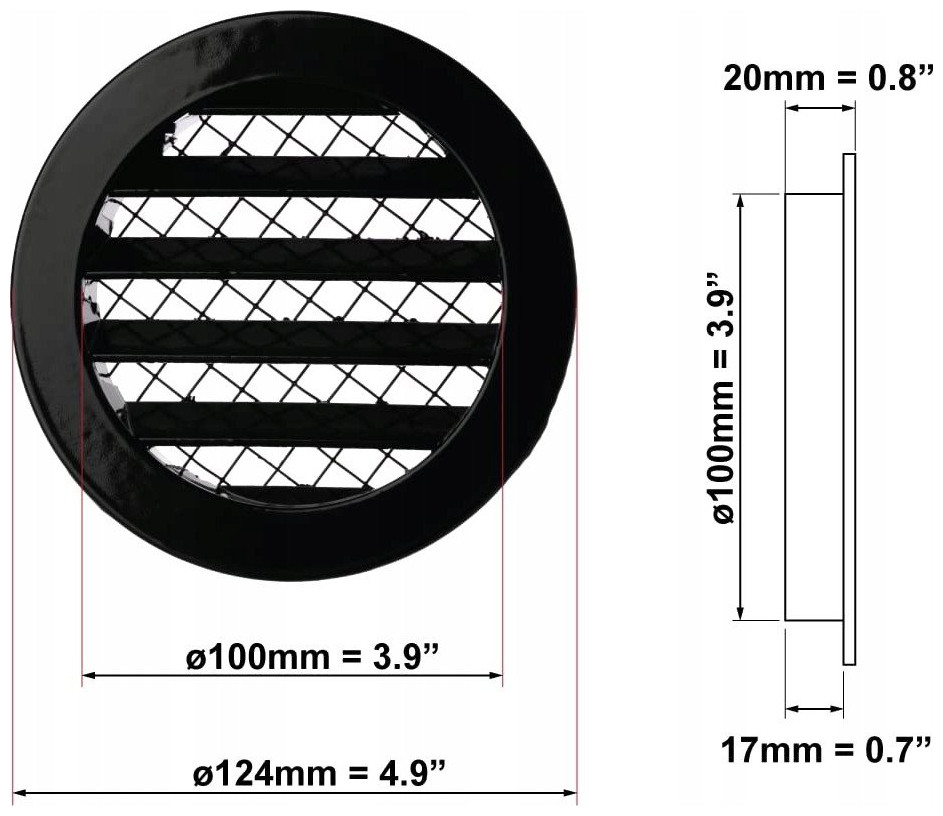 Γρίλια εξαερισμού αλουμινίου MRA100M, DN100, στρογγυλή, μαύρη.