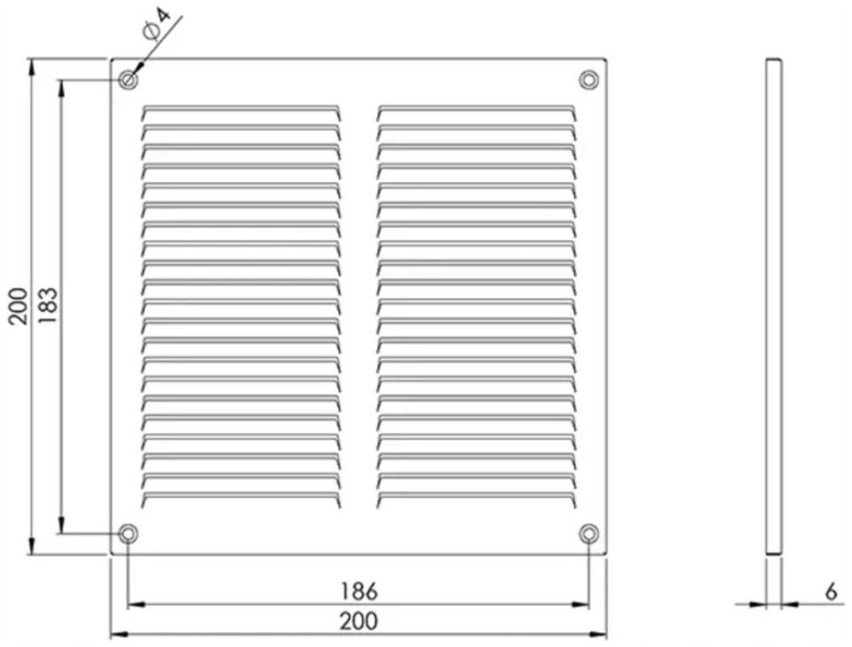 Μεταλλική γρίλια εξαερισμού MR2020, 200 x 200 mm, λευκή.