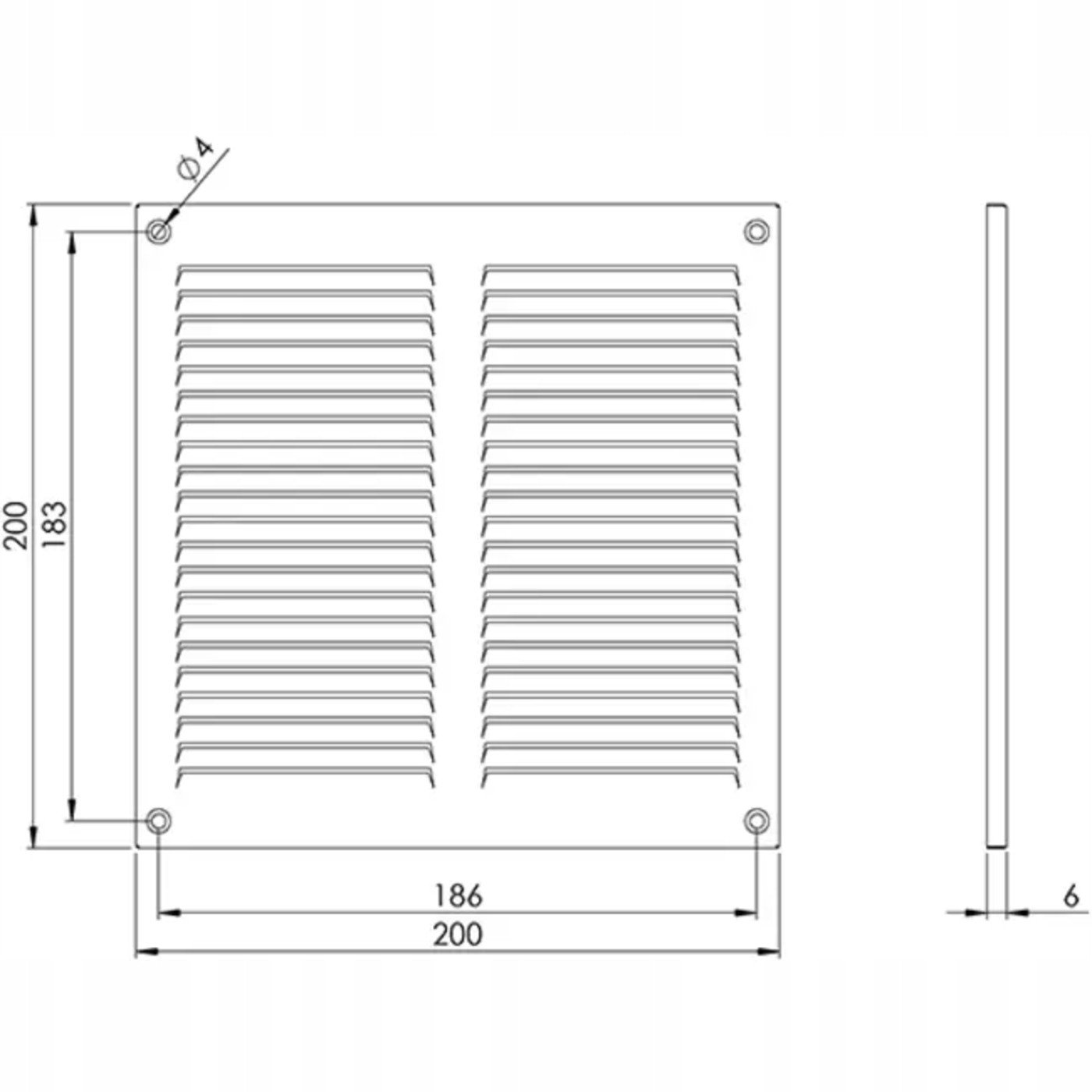 Μεταλλική γρίλια εξαερισμού MR2020M, 200 x 200 mm, μαύρη.