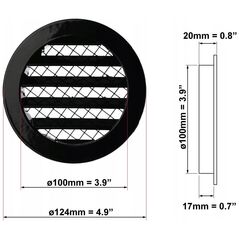 Γρίλια εξαερισμού αλουμινίου MRA100M, DN100, στρογγυλή, μαύρη.