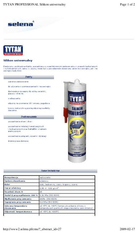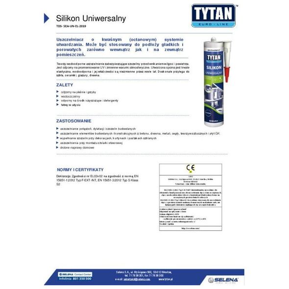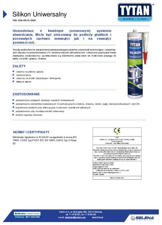 Uszczelniacz o kwaśnym (octanowym) systemie utwardzania. Może być stosowany do podłoży gładkich i