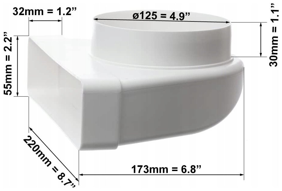 ΓΩΝΙΑ ΕΞΑΕΡΙΣΜΟΥ (220X55 MM D125MM