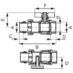 Σφαιρική βαλβίδα με πεταλούδα, με σύνδεσμο, με θερμόμετρο, 1, F-Power