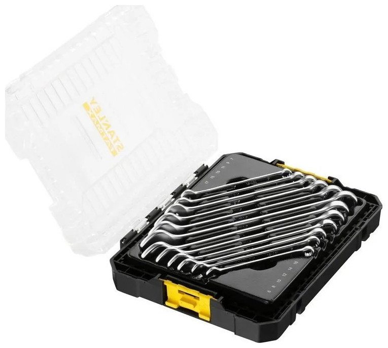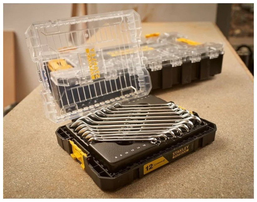 Ένα σετ συνδυαστικών κλειδιών FMMT98104-0, 12 τεμ. Ένα σετ συνδυαστικών κλειδιών Stanley Fatmax, 12 τμχ. Χρησιμοποιώντας τα εργαλεία που προσφέρουμε, μπορείτε να εκτελέσετε διάφορες εργασίες συναρμολόγησης, επισκευής και πολλές άλλες εργασίες. Ένα σημαντικό πλεονέκτημα των πλήκτρων είναι η αντοχή τους, ώστε να μην αστοχούν όταν το λιγότερο αναμενόταν. Αυτό δεν θα ήταν δυνατό χωρίς τον υψηλής ποιότητας χάλυβα που χρησιμοποιείται στην παραγωγή. Αυτά τα κλειδιά έχουν επίσης δύο διαφορετικές μύτες - επίπεδα και δακτυλιοειδή, διαθέσιμα σε μεγέθη από 6 έως 17 mm Διάμετρος κλειδιού (σε mm) 6-17 Υλικό Ατσάλι Τύπος κλειδιών και υποδοχών Συνδυασμός και επίπεδος Αριθμός τεμαχίων στη συσκευασία 12 Σετ συσκευασίας. δακτυλιοειδή κλειδιά - επίπεδα (12 τεμ.): 6-17 mm Εγγύηση (σε χρόνια) 2 Εμπορική μάρκα STANLEY FATMAX Κωδικός PKWiU 25.73.30.0
