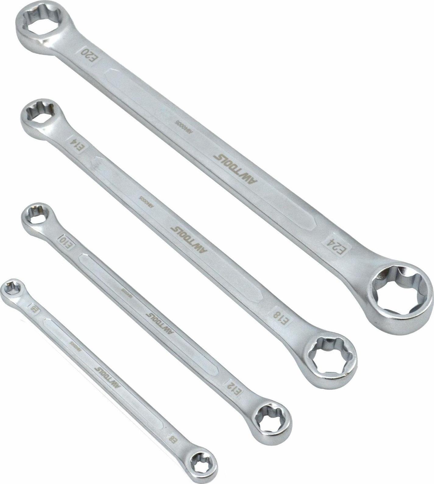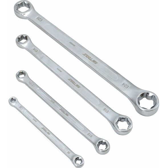 Wykonane z wytrzymałej i sprężystej stali CrV.Dwustronne, wykończenie satynowe.Idealne do użytkowania w miejscach trudno dostępnych. Łatwe i szybkie dokręcanie i odkręcanie śrub i nakrętek.Idealne do zastosowań w użytku domowym, warsztacie i serwisie.Dane techniczne:Ilość: 4 szt.Rozmiar: E6-E24Waga: 0,400kgZestaw zawiera:1 x Klucz oczkowy torx E6xE81 x Klucz oczkowy torx E10xE121 x Klucz oczkowy torx E14xE181x Klucz oczkowy torx E20xE24