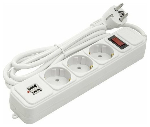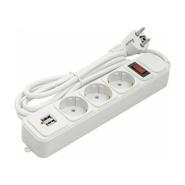 EXD Οικιακός πολύπριζος 1.8m, 3 υποδοχές + 2 USB, με διακόπτη