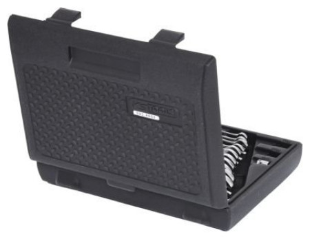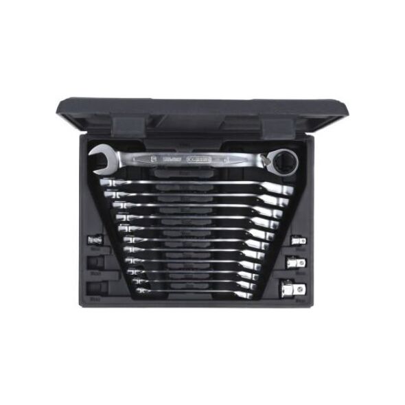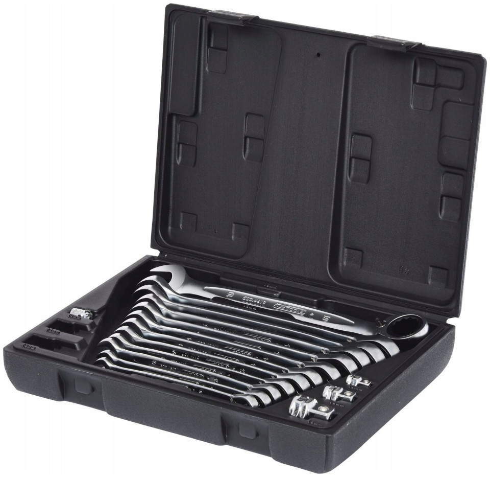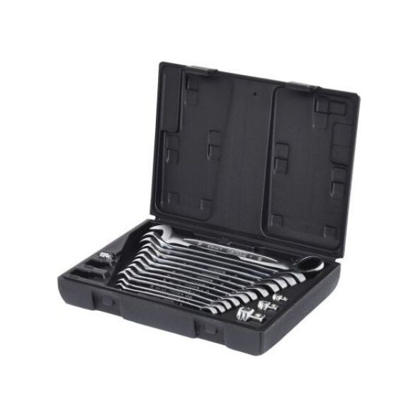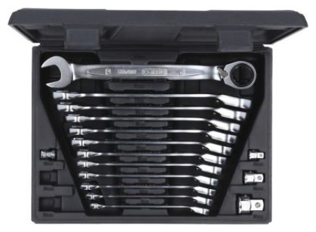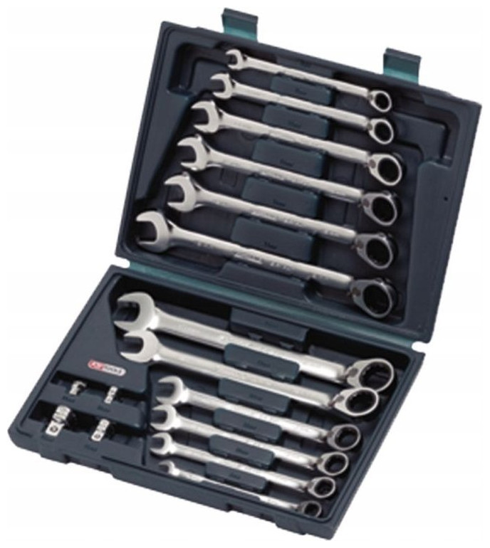 TOOLS KS TOOLS 503.4666 Σετ συνδυαστικών κλειδιών με καστάνια GEARpuls 8-19mm Το σετ συνδυαστικών κλειδιών της KS TOOLS αποτελείται από 16 διακόπτες και κλειδιά καστάνιας. Η απόσταση των σιαγόνων υπό γωνία 15° εξασφαλίζει ασφαλές και αποτελεσματικό κράτημα και η ακριβής εμπλοκή χάρη στα 72 δόντια επιτρέπει την αποτελεσματική εργασία ακόμη και σε δύσκολες συνθήκες. Κάθε κλειδί έχει κεφαλή καστάνιας με μοχλό διακόπτη και τετράγωνο άκρο με σφαιρικό κλείδωμα - χάρη σε αυτό συνεργάζεται με πολλούς τύπους μύτης σύμφωνα με το DIN 3126/C 6.3 επιχρωμιωμένα κλειδιά, κατασκευασμένα από χάλυβα χρωμίου-βαναδίου γωνία επαναφοράς 5°. Βάσει DIN 3113 / ISO 3318 Περιεχόμενο σετ: 12x συνδυαστικό κλειδί: 8 - 9 - 10 - 11 -12 -13 - 14 -15 -16 -17 -18 -19 mm Προφίλ FlankTraction με βάση το DIN 3113 / ISO 3318 σε απόσταση σιαγόνων γωνία 15°, κεφαλή καστάνιας με μετατόπιση 15° ακριβής εμπλοκή χάρη στα 72 δόντια με μοχλό διακόπτη τετράγωνη μύτη σύμφωνα με DIN 3120 / ISO 1174 με κλειδαριά με μπίλια κατά DIN 3126 / C 6.3 πολύ λεπτό σατέν φινίρισμα χρώμιο-βανάδιο