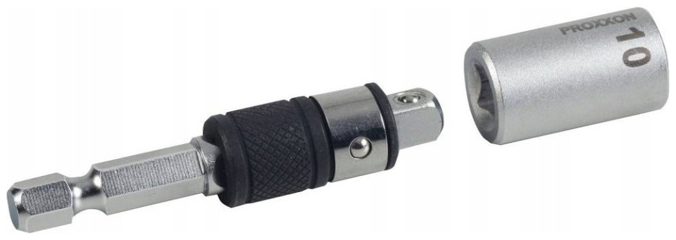 Στήριγμα Proxxon 23783 1/4 bit Αντάπτορας συνδυασμού PROXXON με τετράγωνο στήριγμα bit 1/4" και 1/4". Δέχεται τετράγωνες υποδοχές 1/4" και τυπικές εξάγωνες μύτες 1/4" (6,3 mm). Η λαβή μπορεί να αλλάξει μετακινώντας απλά το χιτώνιο της λαβής. Για χρήση σε κατσαβίδια μπαταρίας και ηλεκτρικά. Σημείωση: Το κείμενο άλλαξε