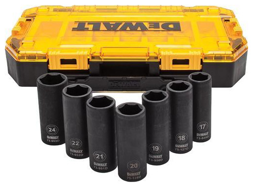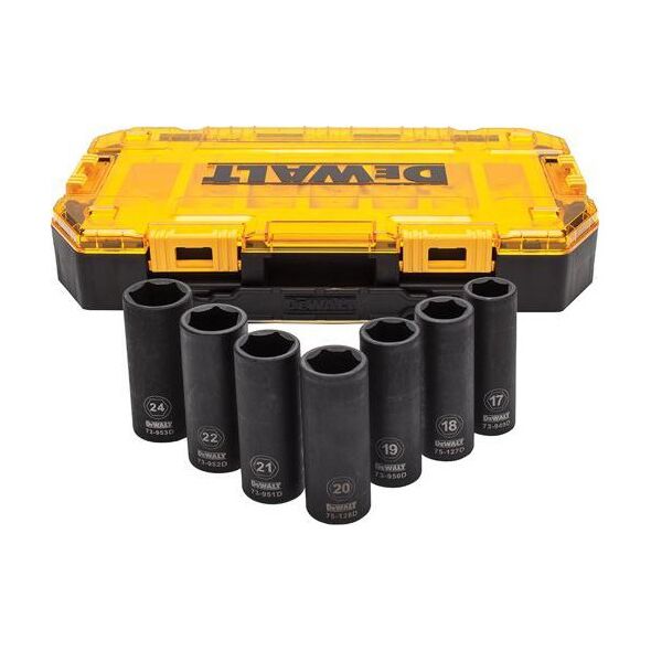 Σετ κρουστικές πρίζες 7 τεμ. 1/2 DWMT74737-0 Το DeWALT είναι ένα σετ πρίζας βαθιάς κρούσης 7 τεμαχίων που προσφέρει μια ποικιλία κρουστικών υποδοχών που ταιριάζουν στις ανάγκες κάθε χρήστη. Το κιτ DWMT74737-0 DeWALT διατίθεται σε στοιβαζόμενη θήκη που κλειδώνει για εύκολη αποθήκευση. Τεχνικά στοιχεία DWMT74737-0 DeWALT: Συσκευασία: Θήκη αξεσουάρ Χρώμα θήκης: Μαύρο/Κίτρινο Τύπος υποδοχής: κρουστικό Μέγεθος υποδοχής: 17, 18, 19, 20, 21, 22, 24 Το σετ περιλαμβάνει: Θήκη μεταφοράς 1/2" (ίντσα), κρουστική υποδοχή 17 Υποδοχή κρουστικής υποδοχής 1/2" (ίντσας) κρουστική υποδοχή 18 1/2" (ίντσας) κρουστική υποδοχή 19 1/2" (ίντσας) κρουστική υποδοχή 20 1/2" (ίντσα) υποδοχή κρουστικής 21 1/2" (ίντσας) ) κρουστική υποδοχή 22 Υποδοχή 1/2" (ίντσα), κρούση 24{Socket mounting size} 1/2" . {Impact} Ναι . {Type} 6 σημείων. {Length} Long. {Packing} Σετ . {Size [mm]} 17. {Size [mm]} 18. {Size. [mm]} 19 . {Μέγεθος [mm]} 22