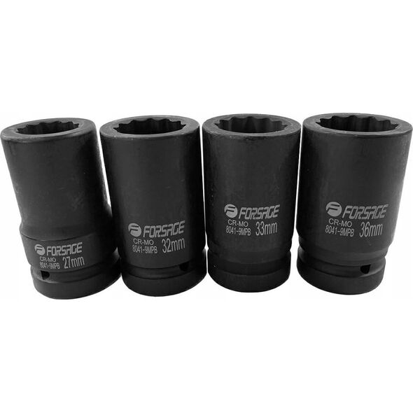 Forsage Σετ βαθιών καρυδιών κρούσης 1" 4 τεμ. (12-γωνιακά) (27-36mm)