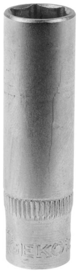 Nasadki 1/4" firmy GEKO wykonane są ze stali stopowej chromowo-wanadowej. Przedłużona trwałość nasadki dzięki zastosowaniu obróbki cieplnej w procesie produkcji. Wydłużony kształt nasadki pozwala na przykręcanie i odkręcanie nawet głęboko osadzonych śrub. Dane techniczne Materiał wykonania: stal chromowo-wanadowa Wykończenie powierzchni: chromowana, matowa Rozmiar nasadki: 13 mm Profil nasadki: 6-kątny Gniazdo: 1/4" Profil gniazda: czworokątny