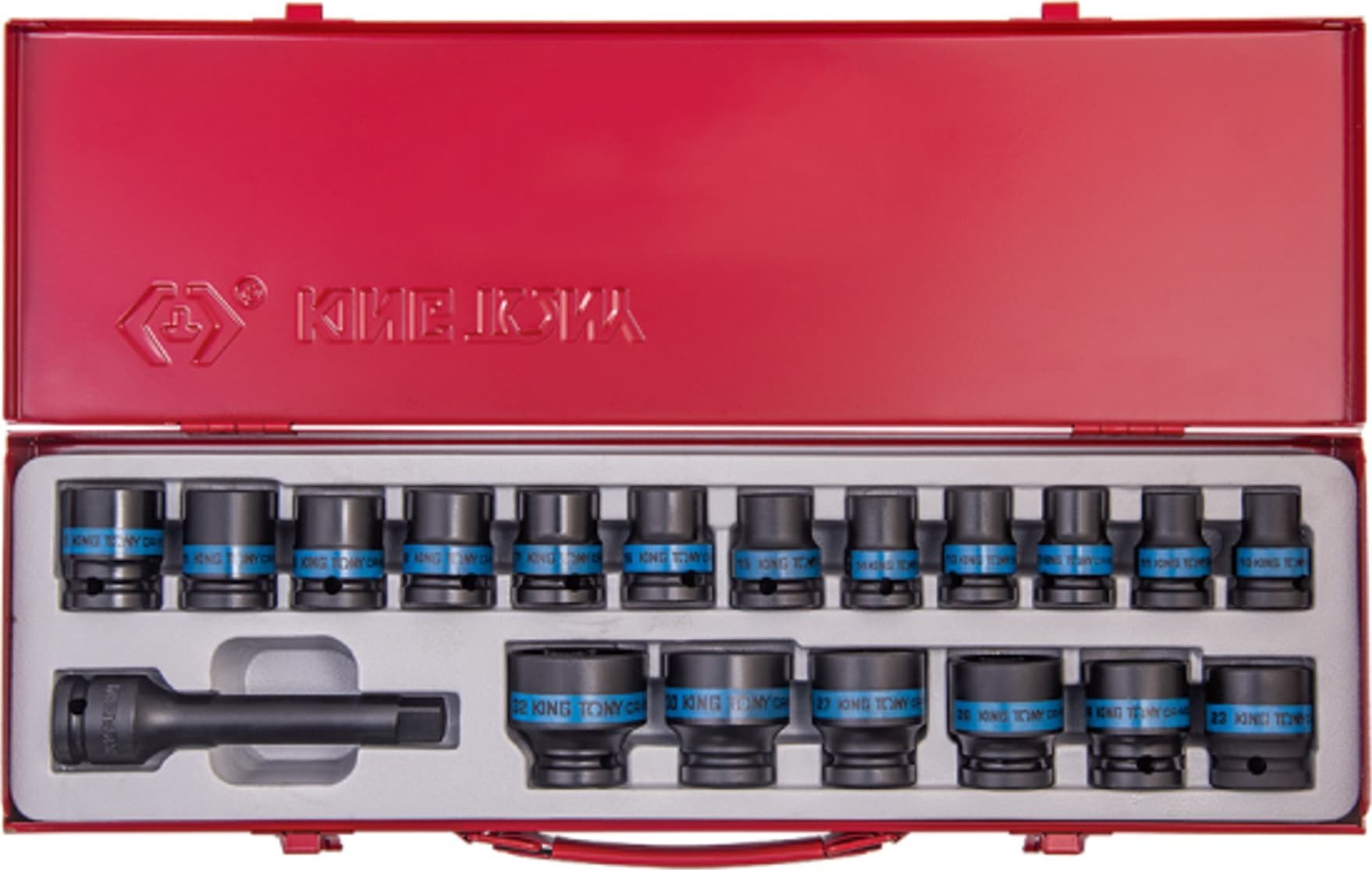 King Tony ΣΕΤ ΚΑΡΥΔΑΚΙΑ ΚΡΟΥΣΤΙΚΑ 1/2" 19τμχ. ΚΟΝΤΑ 6-γων. 10 - 32mm + ΕΠΕΚΤΑΣΗ 4260-05P, ΚΑΣΕΤΑ King Tony