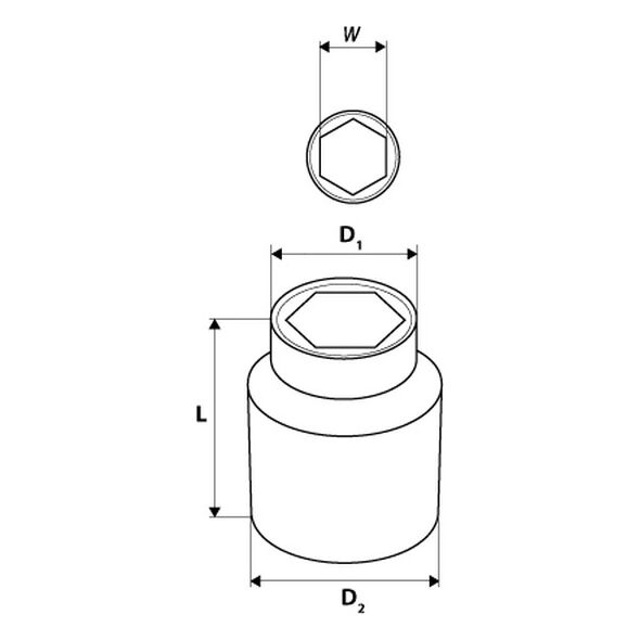 Εξαγωνική υποδοχή 1/2" από ανθεκτικό χάλυβα χρωμίου-βαναδίου σύμφωνα με το DIN 3124