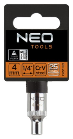 Εξαγωνική υποδοχή NEO 1/4" από ανθεκτικό χάλυβα χρωμίου-βαναδίου σύμφωνα με το DIN 3124.