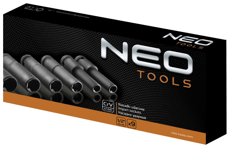 Το σετ κρουστικών υποδοχών 1/2" αποτελείται από 9 στοιχεία