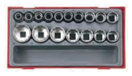 Σετ 17 πριζών Παρέχεται σε πλαστικό δοχείο με αποσπώμενο καπάκι, κατάλληλο για κουτιά εργαλείων και καρότσια Teng.