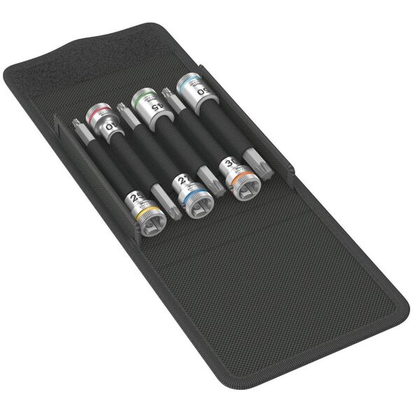 Zestaw orzechów Zyklop 8767 B TORX HF 1 firmy Wera zawiera sześć wkładek. Opracowane przez firmę Wera płytki do kluczy nasadowych TORX HF charakteryzują się optymalizacją geometryczną oryginalnego profilu TORX. Ze względu na siłę zaciskającą wynikającą z nacisku powierzchni pomiędzy końcówką wyjściową a profilem śrubowym, śruby TORX są pewnie trzymane na narzędziu zgodnie ze specyfikacją Acument Intellectual Properties. Jest to szczególnie przydatne w trudno dostępnych miejscach, w których nie można użyć drugiej ręki do trzymania śruby. Zestaw orzechów Zyklop 8767 B TORX HF 1 nadaje się do pracy ręcznej i maszynowej (bez uderzeń) i ma radełkowanie z tyłu, co zapewnia wysoką przyczepność w trybie ręcznym. Dodatkowo wkładki mają kod koloru i znacznik rozmiaru, co ułatwia znalezienie żądanego rozmiaru. Składana torba tekstylna nadaje się do przymocowania do ściany, wózka warsztatowego i systemu Wera 2go. Dane techniczne: Kod EAN 4013288195074 Do śrub z gniazdem sześciokątnym Liczba części 6 Dołączone narzędzia Wkładki klucza nasadowego Dołączone profile wewnątrz sześciokąta Gniazda śrubokrętów 6 sztuk: napęd 3/8 ”, długi TORX T 25 / T 27 / T 30 / T 40 / T 45 / T 50 Wersja z profilem WERA Hex-Plus Pojemnik na tekstylia