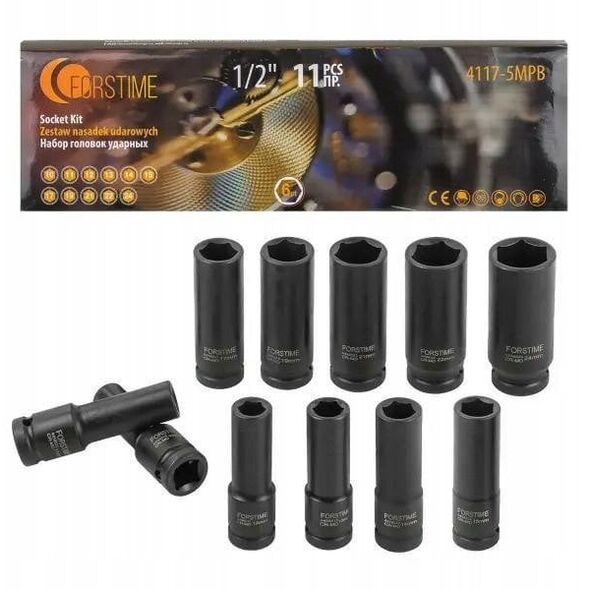 Σετ βαθιών καρυδιών κρούσης 1/2" 11τεμ. (6-γωνικά) (10-24mm)