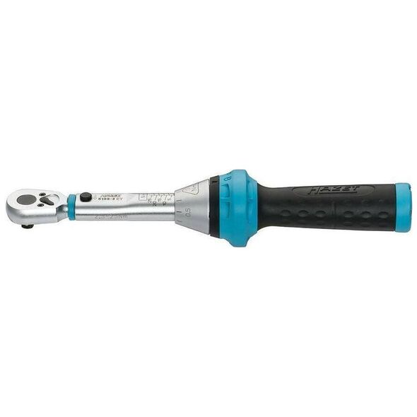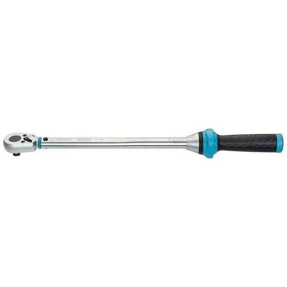 Klucz dynamometryczny SYSTEM 5000-3 CT Wykonanie: odporna i wytrzymała konstrukcja ze stalowej rurki z ergonomicznie ukształtowaną rękojeścią z tworzywa sztucznego. Szybkie i bezpieczne ustawienie żądanej wartości momentu obrotowego przez pokręcanie rękojeścią. Bezpieczne blokowanie ustawionych wartości za pomocą funkcji blokady na pierścieniu obrotowym. Zintegrowana funkcja grzechotki dwukierunkowej z przełącznikiem dźwigniowym zapewnia kontrolowane dokręcanie w prawo. Akustyczna i wibracyjna sygnalizacja wyzwolenia. Duża dokładność dzięki precyzyjnej podziałce. Spełnia wymagania dotyczące dokładności zgodnie z normą DIN EN ISO 6789-2:2017 typ II. Dostawa w pudełku z tworzywa sztucznego, z protokołem badania fabrycznego. Zastosowanie: do kontrolowanego dokręcania śrub w odpowiednim zakresie momentów obrotowych we wszystkich obszarach produkcji przemysłowej.