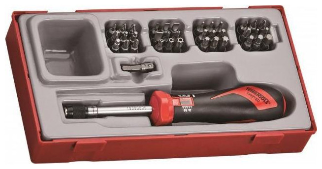 Zestaw zawierający wkrętak dynamometryczny 1-5 Nm z uchwytem szybkomocującym, adapter 1/4-1/4" oraz 36 rożnych grotów. Dokładność ±6%. Dostarczany w pojemniku z tworzywa sztucznego z odłączaną pokrywą. Pasuje do skrzynek i wózków narzędziowych Teng Tools.Zestaw zawierający wkrętak dynamometryczny 1-5 Nm z uchwytem szybkomocującym, adapter 1/4-1/4" i 36 różnych bitów...