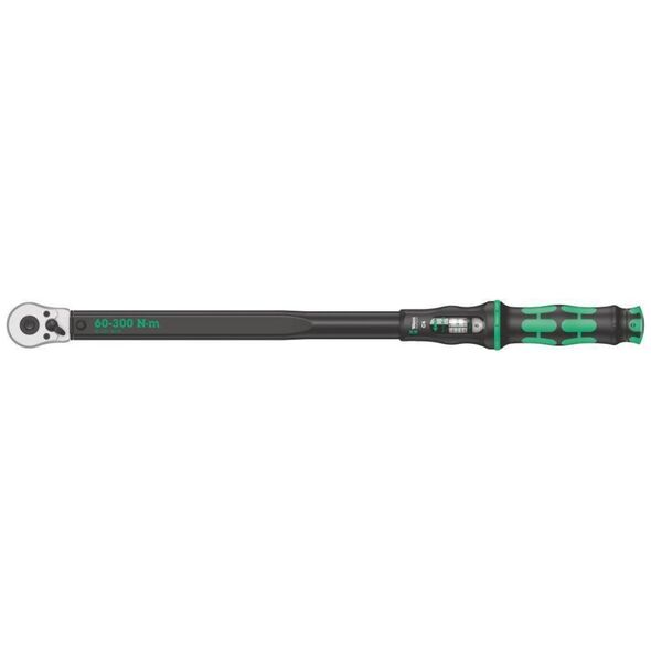 Klucz dynamometryczny Click-TorqueWykonanie: mocna konstrukcja z rękojeścią z wielokomponentowego tworzywa sztucznego. Nastawny klucz dynamometryczny z czworokątnym napędem i zintegrowaną funkcją grzechotki dwukierunkowej z przełącznikiem dźwigniowym do kontrolowanego przykręcania w prawo i w lewo. Słyszalny i odczuwalny sygnał podczas ustawiania wartości na podziałce precyzyjnej i po osiągnięciu momentu obrotowego. Moment obrotowy można odczytać na podziałce głównej i precyzyjnej. Zastosowanie: do kontrolowanego dokręcania śrub w zakresie odpowiednich momentów obrotowych we wszystkich obszarach produkcji przemysłowej.