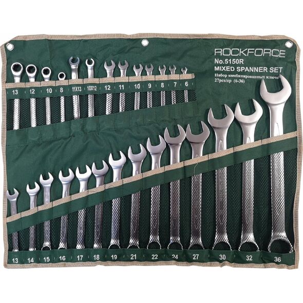 Sourcing ROCKFORCE COMBINATION WRENCH, set, 27 pcs. (6-36mm) INCLUDING 4 WITH RATCHET