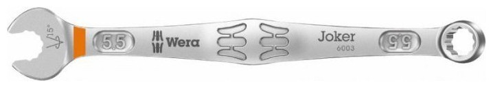 Τεχνικά στοιχεία: Μέγεθος κλειδιού [mm]: 5,5 Συνολικό μήκος [mm]: 105 Εξωτερική διάσταση σιαγόνας [mm]: 16 Πάχος κεφαλής [mm]: 4 Εξωτερική διάσταση (κλειδί με καστάνια) [mm]: 10 Μέγ. ύψος κεφαλής (κλειδί καστάνιας) [mm]: 6 Συνδυαστικό κλειδί 6003 Joker, 5,5 x 105 mm Δεδομένου ότι στην εργασία τους, οι χρήστες αντιμετωπίζουν ολοένα και συχνότερα καταστάσεις στις οποίες ο χώρος εγκατάστασης είναι πολύ περιορισμένος, χρειάζονται εργαλεία που θα τους επιτρέψουν να εκτελούν επίσης εργασίες σε τέτοιες συνθήκες. Οι στενοί χώροι εγκατάστασης απαιτούν πρόσθετα σημεία στερέωσης για εργαλεία. Λοιπόν, μπορούν τα ανοιχτά κλειδιά να τροποποιηθούν με τέτοιο τρόπο ώστε να αυξηθούν οι δυνατότητες τοποθέτησης του εργαλείου; Ο συνδυασμός γωνίας γνάθου 7,5° και διπλής εξάγωνης γεωμετρίας διπλασιάζει τον αριθμό των σημείων εφαρμογής. Κατά τη διάρκεια πολλών επαναλαμβανόμενων περιστροφών 180° γύρω από τον διαμήκη άξονα, είναι δυνατό να τοποθετείτε το κλειδί κάθε 15° στο παξιμάδι ή την κεφαλή του μπουλονιού. Το κλειδί Joker 6003 με την καλά μελετημένη γεωμετρία της σιαγόνας διευρύνει σημαντικά το φάσμα των εφαρμογών σε περιορισμένους χώρους. Το Joker 6003 βρίσκει αυτόματα το κατάλληλο σημείο εφαρμογής μετά από κάθε περιστροφή. Η λεπτή, αλλά ανθεκτική πλευρά της οπής του κλειδιού έχει κλίση 15° σε σχέση με τον άξονα του εργαλείου. Η υψηλής ποιότητας επιφάνεια παρέχει πολύ καλή και μακροχρόνια αντιδιαβρωτική προστασία. Σχεδιασμένο ειδικά για στενούς χώρους Η ειδική γεωμετρία σιαγόνων επεκτείνει τις δυνατότητες χρήσης του εργαλείου Η μικρή γωνία εργασίας σας επιτρέπει να "πιάνετε" τη βίδα κάθε 15° Λεπτή πλευρά οπής του κλειδιού, με κλίση υπό γωνία 15° Wera εργαλείο "Take it easy" σύστημα εύρεσης: χρωματική κωδικοποίηση εργαλείων κατά μέγεθος** ...