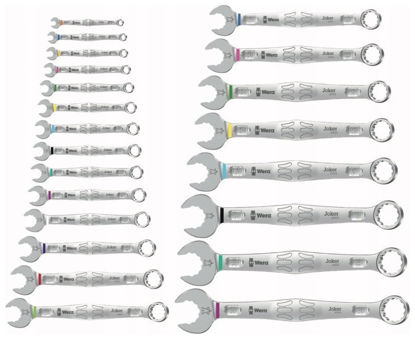Σύστημα εύρεσης εργαλείων Wera "Take it easy": χρωματική κωδικοποίηση πλήκτρων ανά μέγεθος.