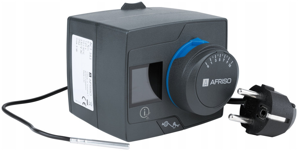 Εφαρμογή: Ο ελεγκτής θερμοκρασίας ACT 343 ProClick έχει σχεδιαστεί για να διατηρεί μια σταθερή θερμοκρασία του μέσου που ρέει μέσω της περιστροφικής βαλβίδας ανάμειξης. Μπορεί να χρησιμοποιηθεί και στις δύο βαλβίδες ανάμειξης ARV ProClick 3 και 4 κατευθύνσεων. Η έγχρωμη οθόνη του σάς επιτρέπει να αυτοματοποιείτε και να ελέγχετε τη λειτουργία της εγκατάστασης Κατασκευή: Ο ελεγκτής θερμοκρασίας ACT 343 ProClick είναι ενσωματωμένος στον ενεργοποιητή. Το σετ περιλαμβάνει επίσης αισθητήρα θερμοκρασίας και ηλεκτρικό καλώδιο με βύσμα. Κάθε ρυθμιστής αντικαθιστά έναν ξεχωριστό ενεργοποιητή βαλβίδας ανάμειξης και έναν ξεχωριστό ρυθμιστή υπεύθυνο για τον έλεγχο της λειτουργίας της βαλβίδας. Όλες οι ρυθμίσεις αλλάζουν χρησιμοποιώντας τα κουμπιά που βρίσκονται κάτω από το κουμπί. Ο ρυθμιστής διαθέτει διακόπτη τρόπου λειτουργίας που σας επιτρέπει να κάνετε εναλλαγή μεταξύ αυτόματης και χειροκίνητης λειτουργίας. Η εγκατάσταση του ρυθμιστή στις βαλβίδες ανάμειξης της σειράς ARV ProClick δεν απαιτεί τη χρήση εργαλείων. Ο ελεγκτής θερμοκρασίας ACT 343 ProClick δεν απαιτεί συντήρηση Τάση τροφοδοσίας: 230 V AC Χρόνος περιστροφής 90°: 120 δευτερόλεπτα ροπή: 6 Nm Εύρος ρύθμισης θερμοκρασίας: 10 ÷ 90°C Αισθητήρας βαλβίδας: ΝΑΙ Έλεγχος αντλίας κυκλοφορίας: ΟΧΙ Αισθητήρας πηγής θερμότητας. /chill: ΟΧΙ
