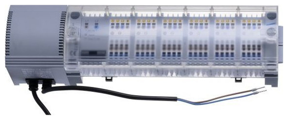 Μονάδα ελέγχου 24V για ενσύρματο σύστημα, σχεδιασμένη να ελέγχει θερμοστάτες και ηλεκτροθερμικές κεφαλές. Χάρη στις συνδεδεμένες μονάδες επέκτασης, το μέγεθος και η λειτουργικότητά του μπορούν να προσαρμοστούν. Αυτό το μοντέλο περιλαμβάνει 6 ζώνες και δείκτες δραστηριότητας για μεμονωμένες ζώνες, καθώς και έναν μετασχηματιστή 50 VA.{Εφαρμογή} Ενδοδαπέδια θέρμανση