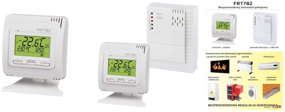 FRT7B2 - ασύρματος προγραμματιζόμενος θερμοστάτης που χρησιμοποιείται για τον έλεγχο πάνελ υπερύθρων, ηλεκτρική ενδοδαπέδια θέρμανση, θερμαντήρες ακτινοβολίας, τυχόν ηλεκτρικά καλοριφέρ κ.λπ. Πλεονεκτήματα του FRT7B2: