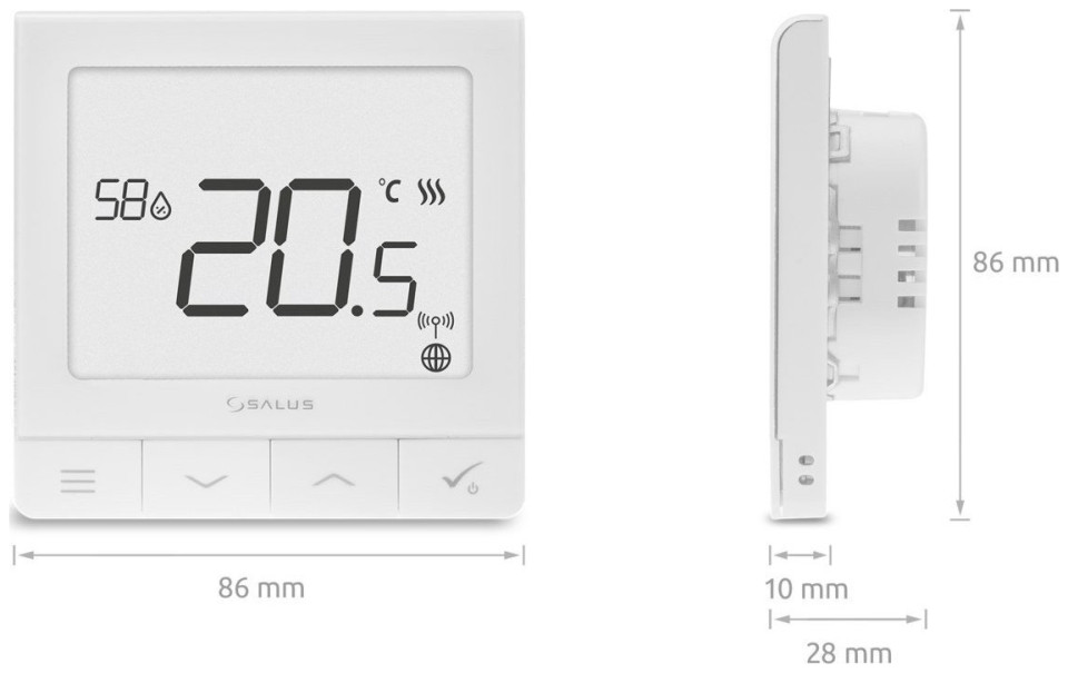 Ενσύρματο ελεγκτή θερμοκρασίας SALUS SQ610 230V, προγραμματιζόμενο, εβδομαδιαίο, χωνευτό, λευκό, με αισθητήρα υγρασίας Ο ελεγκτής Quantum SQ610 είναι μια μοναδική συσκευή που έχει σχεδιαστεί για να εκπληρώνει πολλές λειτουργίες, ενώ είναι εξαιρετικά εύκολη στη χρήση και την εγκατάσταση. Χαρακτηρίζεται από έναν μοναδικό, μοντέρνο σχεδιασμό που ανταποκρίνεται στις ανάγκες πολλών πελατών, δηλαδή ένα πολύ λεπτό σχήμα Ο ρυθμιστής QUANTUM SQ610 έχει σχεδιαστεί για την απλούστερη δυνατή χρήση. Ο αριθμός των κλικ που πρέπει να κάνετε κατά την πρώτη εκκίνηση έχει μειωθεί στο ελάχιστο - μπορείτε να ολοκληρώσετε την εγκατάσταση ακόμη και με 3 απλά βήματα Ο ρυθμιστής μπορεί να λειτουργήσει ως ρυθμιστής του συστήματος SALUS Smart Home και να επικοινωνεί ασύρματα με άλλους! στοιχεία συστήματος Χάρη στο ρελέ χωρίς τάση στον ρυθμιστή SQ610, μπορείτε να ελέγξετε την εγκατάσταση ενσύρματα. Επιπλέον, μπορείτε να το ελέγχετε μέσω Διαδικτύου χωρίς να χρειάζεται να αντικαταστήσετε τις υπάρχουσες συσκευές σας. Παράμετροι: • Βάρος: 0,26 • Κωδικός προϊόντος: CKR329 • EAN: 5060103697670