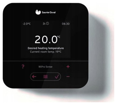 Ελεγκτής δωματίου SRT 380f MiSet Radio. Διεπαφή προσαρμοσμένη στους νέους λέβητες Isofast και Isotwin. Για χρήση με λέβητες Saunier Duval εξοπλισμένους με βύσμα eBUS. Ελέγχει τα συστήματα θέρμανσης, ζεστού νερού και κυκλοφορίας. Για συνεργασία με ασύρματο εξωτερικό αισθητήρα θερμοκρασίας Χρώμα: μαύρο Τύπος ρύθμισης: δωμάτιο Τύπος επικοινωνίας με τη συσκευή: Κατηγορία ρυθμιστή ραδιοφώνου: 5 μερίδιο ρυθμιστή στην εποχιακή ενεργειακή απόδοση του θερμαντήρα χώρου: 3% Ένας σύγχρονος θερμοστάτης για το σπίτι σας Το MiSet Ο θερμοστάτης δωματίου μπορεί να εγκατασταθεί σε εγκαταστάσεις με λέβητες Saunier Duval που κατασκευάζονται από το 2003. Χάρη σε αυτή τη συμβατότητα προς τα πίσω, δεν υπάρχει ανάγκη αντικατάστασης του παλιού λέβητα με νέο - μικρότερο κόστος εγκατάστασης, μικρότερο δικαστικά έξοδα. Σχεδιασμένο για ευκολία στη χρήση Δεν υπάρχει χώρος για λάθη. Δεν χρειάζεστε ειδικές γνώσεις για τη διαισθητική χρήση του ελεγκτή και τη λήψη πρόσθετων πληροφοριών χάρη στο κουμπί με το ερωτηματικό Προσαρμόστε τη θερμοκρασία σύμφωνα με τις προτιμήσεις σας βοηθός. Απαντώντας σε απλές ερωτήσεις όπως «Τι θερμοκρασία θέλετε να έχει το δωμάτιο;», θα εισαγάγετε τον δικό σας ορισμό της άνεσης. Οι επεξηγήσεις όλων των στοιχείων ελέγχου σάς βοηθούν να κατανοήσετε τις σημαντικές λειτουργίες του νέου σας θερμοστάτη. Βελτιστοποιήστε την κατανάλωση ενέργειας - εγκαταστήστε έναν πρόσθετο εξωτερικό αισθητήρα Η εγκατάσταση ενός πρόσθετου εξωτερικού αισθητήρα μετατρέπει τον θερμοστάτη MiSet σε έναν απλό ελεγκτή συστήματος. Μπορεί να ρυθμίσει τη θερμοκρασία στο δωμάτιο ανάλογα με την εξωτερική θερμοκρασία. Απολαύστε άνετη, ρυθμισμένη με ακρίβεια θερμοκρασία σε ένα ζεστό σπίτι και πιο αποτελεσματική λειτουργία του συστήματος θέρμανσης.