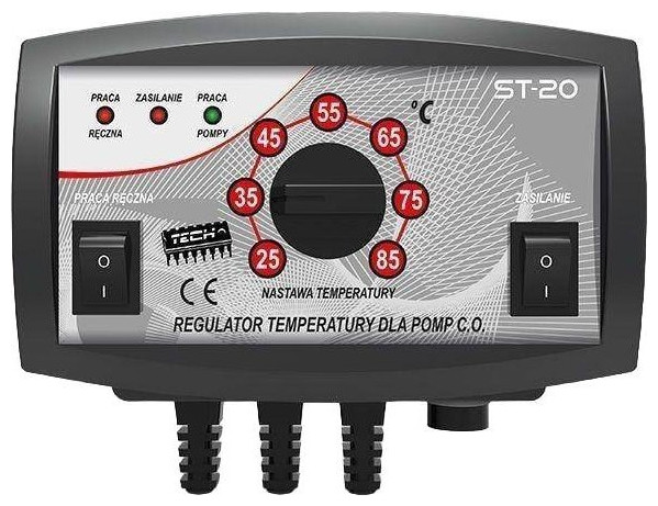 Ελεγκτής αντλίας ST-20 TECH Ελεγκτές WG.14.0106 TECH-CONTROLLERS Ελεγκτής αντλίας Ο ρυθμιστής ST-20 έχει σχεδιαστεί για να ελέγχει την αντλία κυκλοφορίας νερού κεντρικής θέρμανσης. Η ρυθμισμένη θερμοκρασία ρυθμίζεται χρησιμοποιώντας ένα ποτενσιόμετρο ΑΡΧΗ ΛΕΙΤΟΥΡΓΙΑΣ: Ο ρυθμιστής ST-20 έχει σχεδιαστεί για να ελέγχει την αντλία κυκλοφορίας νερού κεντρικής θέρμανσης. Η ρυθμισμένη θερμοκρασία ρυθμίζεται χρησιμοποιώντας ένα ποτενσιόμετρο. Η αποστολή του ελεγκτή είναι: να ενεργοποιεί την αντλία εάν η θερμοκρασία φτάσει την καθορισμένη τιμή και να την απενεργοποιεί - εάν ο κλίβανος κρυώσει κατά 2°C κάτω από την καθορισμένη τιμή. Αυτός ο τρόπος λειτουργίας αποτρέπει την περιττή λειτουργία της αντλίας, η οποία σας επιτρέπει να εξοικονομήσετε ηλεκτρική ενέργεια και να παρατείνετε τη διάρκεια ζωής της αντλίας και αυξάνει την αξιοπιστία της. ΤΕΧΝΙΚΑ ΣΤΟΙΧΕΙΑ: Τροφοδοσία: 230V/50Hz +/-10% Μέγιστη κατανάλωση ρεύματος του ελεγκτή: 2 Θερμοκρασία περιβάλλοντος: 5÷50°C Μέγιστο φορτίο στην έξοδο της αντλίας: 1A Εύρος ρύθμισης θερμοκρασίας θέρμανσης: 25÷85° CHστερεση: 2°C Ακρίβεια μέτρησης: 1°C Μήκος καλωδίου αισθητήρα: 1,5 m Εύρος μέτρησης θερμοκρασίας: 0÷85°C Μοντέλο: ST- https://terme.pl/data/gfx/pictures/large/6/8/6886_1.jpg Τύπος προϊόντος: PUMP CONTROLLER Εύρος μέτρησης θερμοκρασίας: 0÷85°CS Μήκος καλωδίου αισθητήρα: 1,5 m Ακρίβεια μέτρησης: 1° CHisteresis: 2° Εύρος ρύθμισης θερμοκρασίας εξαπάτησης: 25÷85°C Μέγιστο φορτίο εξόδου αντλίας: 1 Θερμοκρασία περιβάλλοντος: 5÷50°C Μέγιστη κατανάλωση ρεύματος του ελεγκτή: 2W Τροφοδοτικό: 230V/50Hz +/-10% Κωδικός κατασκευαστή: WG.14.0106Υστέρηση (διαφορά μεταξύ της τρέχουσας θερμοκρασίας και της ζήτησης): 2°C Μέγιστο φορτίο του Έξοδος αντλίας: 1A{Εφαρμογή} Κεντρική θέρμανση