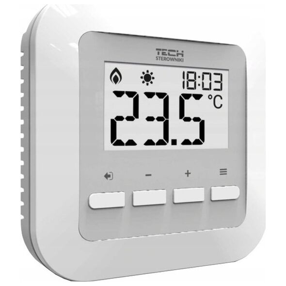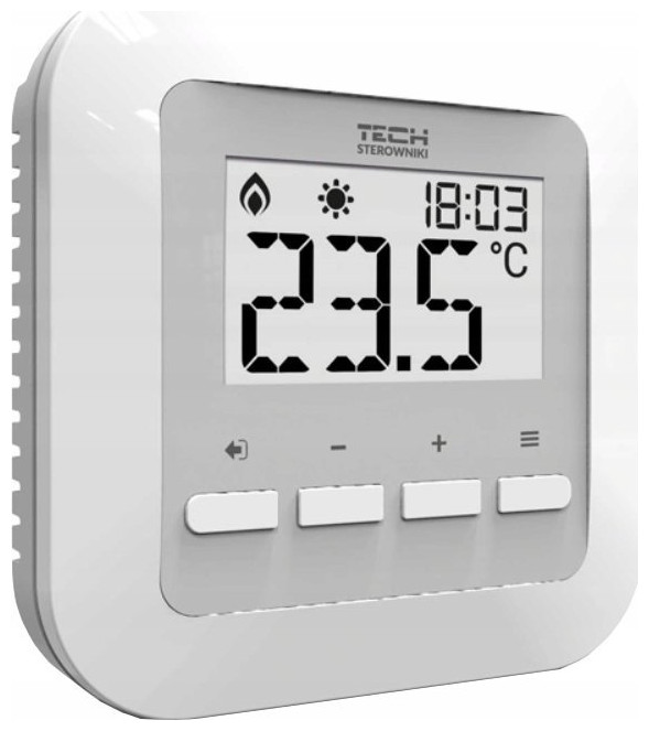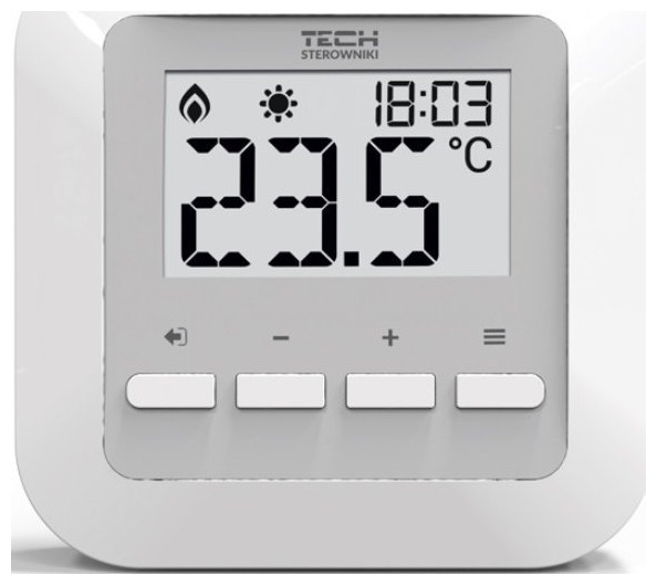 TECH ασύρματος ρυθμιστής δωματίου ST-295v3TECH ασύρματος ρυθμιστής δωματίου ST-295v3 Ο ρυθμιστής δωματίου ST-295 έχει σχεδιαστεί για να ελέγχει μια συσκευή θέρμανσης. Το καθήκον του ρυθμιστή είναι να διατηρεί την επιθυμητή θερμοκρασία στη θερμοκρασία του διαμερίσματος/δαπέδου στέλνοντας ένα σήμα στη συσκευή θέρμανσης (κλείνοντας την επαφή) ή στέλνοντας ένα σήμα στη λωρίδα που ελέγχει τους ενεργοποιητές με πληροφορίες σχετικά με την ανάγκη θέρμανσης του δωματίου ή του δαπέδου στην απαιτούμενη θερμοκρασία. Λειτουργίες ελεγκτή ST-295: Διατήρηση της επιθυμητής θερμοκρασίας δωματίου/δαπέδου Χειροκίνητο πρόγραμμα Πρόγραμμα ημέρας/νύχτας Έλεγχος θερμοκρασίας δωματίου +/- με ακρίβεια υστέρησης 0,1°C στην περιοχή από 0,2 έως 8°C λειτουργία ημέρας/νύχτας χειροκίνητος έλεγχος λειτουργίας λειτουργίας σύμφωνα με τη θερμοκρασία δαπέδου (όταν χρησιμοποιείται αισθητήρας δαπέδου) ασύρματη επικοινωνία Εξοπλισμός ελεγκτή: Ενσωματωμένος αισθητήρας δωματίου Προσωρινός οπίσθιος φωτισμός οθόνης 2 x μπαταρίες AAA 1,5V Δυνατότητα σύνδεσης αισθητήρα δαπέδου Δυνατότητα σύζευξης με τη μονάδα MW-1 (έκδοση v2) Ο ρυθμιστής δωματίου πρέπει να συνδεθεί στη συσκευή θέρμανσης χρησιμοποιώντας ένα καλώδιο δύο συρμάτων. Η σύνδεση των καλωδίων και των δύο συσκευών φαίνεται στο παρακάτω διάγραμμα: Ο ρυθμιστής δωματίου μπορεί να λειτουργήσει σε έναν από τους δύο τρόπους λειτουργίας: Λειτουργία ημέρας/νύχτας - Σε αυτήν τη λειτουργία, η επιθυμητή θερμοκρασία εξαρτάται από την ώρα της ημέρας - ο χρήστης ρυθμίζει ξεχωριστά επιθυμητές θερμοκρασίες για την ημέρα και τη νύχτα και τις ώρες κατά τις οποίες ο ελεγκτής θα ξεκινήσει την ημέρα και τη νύχτα. Για να ενεργοποιήσετε αυτή τη λειτουργία, πατήστε το κουμπί EXIT μέχρι να εμφανιστεί το εικονίδιο της λειτουργίας ημέρας/νύχτας στην κύρια οθόνη. Χειροκίνητη λειτουργία – Σε αυτήν τη λειτουργία, η επιθυμητή θερμοκρασία ρυθμίζεται χειροκίνητα απευθείας από την κύρια οθόνη χρησιμοποιώντας τα κουμπιά ΣΥΝ ή ΠΛΗΝ. Η χειροκίνητη λειτουργία θα ενεργοποιηθεί αυτόματα όταν πατήσετε ένα από αυτά τα κουμπιά. Όταν η χειροκίνητη λειτουργία είναι ενεργοποιημένη, ο προηγουμένως ενεργός τρόπος λειτουργίας γίνεται "αδράνεια" μέχρι την επόμενη προγραμματισμένη αλλαγή στην επιθυμητή θερμοκρασία. Η χειροκίνητη λειτουργία μπορεί να απενεργοποιηθεί πατώντας το κουμπί EXIT. Ο ρυθμιστής δωματίου ST-295 έχει σχεδιαστεί για να διατηρεί την επιθυμητή θερμοκρασία δωματίου/δαπέδου στέλνοντας ένα σήμα στη συσκευή θέρμανσης (κλείσιμο επαφής) ή στέλνοντας ένα σήμα στη λωρίδα που ελέγχει τους ενεργοποιητές με πληροφορίες σχετικά με την ανάγκη θέρμανσης του δωματίου/ πάτωμα. Μετά τη λήψη ενός τέτοιου σήματος, η συσκευή θέρμανσης ξεμπλοκάρει τη ροή στη θερμοστατική βαλβίδα με το Εγχειρίδιο λειτουργίας και εγκατάστασης του ρυθμιστή.