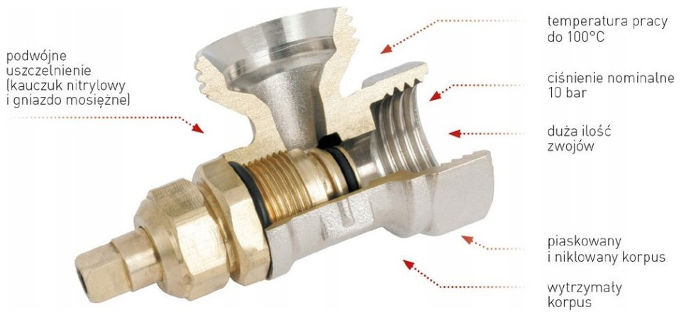 Zestaw termostatyczny kątowy, biały Producent: FERRO Kod produktu (index): ZTM31WHOpis produktu: Parametry techniczne: Maksymalna temperatura pracy: 100°C Maksymalne ciśnienie pracy: 10 bar Głowica termostatyczna: Przyłącze: M30x1,5 Maksymalna temperatura otoczenia: 50°C Skala regulacyjna: * - 5 Zakres regulacji: 9 - 30°C Ochrona przeciwzamrożeniowa: ~ 9°C Elementy zestawu: głowica termostatyczna GT30 zawór termostatyczny kątowy 1/2 zawór odcinający kątowy 1/2” Opis producenta: Ferro jest znanym i cenionym producentem wysokiej jakości artykułów. Firma ta działa na rynku krajowym i międzynarodowym, dostarczając swoje wyroby do klientów w Polsce, Europie i na całym świecie. Grupa Ferro obejmuje takie podmioty jak Ferro S.A. (nadrzędny podmiot), Ferro International Sp. z o.o. i Novaservis spol. s.r.o. Firma działa również w Rumunii, na Słowacji i w Bułgarii. Ferro jest liderem w produkcji wysokiej jakości armatury i elementów techniki grzewczej. Firma dystrybuuje swoje wyroby do 30 krajów na 2 kontynentach. Ferro – lider w produkcji wysokiej jakości armatury i elementów techniki grzewczej Produkty firmy Ferro obejmują różne rodzaje armatury sanitarnej, instalacyjnej oraz techniki grzewczej. Firma ta odznacza się dużym zasięgiem międzynarodowym i uznaniem klientów, co pozwoliło jej na zdobycie tytułu najlepszego dostawcy w Europie Środkowo-Wschodniej. W ofercie Ferro znajdują się m.in. natryski, zawory i grzejniki, które są doskonałej jakości i spełniają oczekiwania nawet najbardziej wymagających klientów.