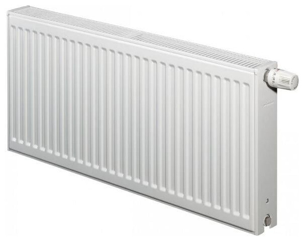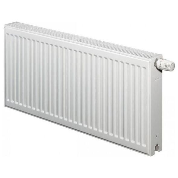 Grzejnik płytowy o klasycznej ponadczasowej linii oraz zaokrąglonych krawędziach przyjaznych dla dzieci. Grzejniki COMPACT wykonane są z zimnowalcowanej blachy specjalnej o jakości wg EN 442-1, z osłonami bocznymi oraz górną pokrywą-grillem. Stanowią one kompletny element grzewczy. Karbowanie blachy paneli występuje co 33,3 mm. Do wewnętrznych stron kanałów wodnych zgrzana jest blacha konwekcyjna. Obróbka powierzchni zewnętrznej polega na odtłuszczeniu, żelazofosforanowaniu, pasywacji, płukaniu i gruntowaniu poprzez kataforetyczne elektrozanurzenie wg DIN 55900 część 1 oraz wypaleniu. Końcowa obróbka powierzchni polega na wysokowartościowym, elektrostatycznym powlekaniu proszkowym wg DIN 55900 część 2 i ponownym wypaleniu. Kolor biały Stelrad 9016. Standardowo grzejniki wyposażone są w komplet zamocowań listwowych typu Monclac, które umożliwiają odwracanie grzejnika i wygodny montaż, korek i odpowietrznik. Opakowane są w termokurczliwą folię z kartonową osłoną krawędzi. Konstrukcja odpowiada wymogom bezpieczeństwa BAGUV. Gwarancja jakości wg DIN ISO 9002 Wydajność cieplna sprawdzona wg EN 442 Przyłącza: 4x 1/2" Podłączenie: od boku z prawej lub lewej strony Nadciśnienie robocze: 10 bar Temperatura nośnika ciepła: gorąca woda do 110°C Typ: 22 Wysokość: 300mm Długość: 1600mm Głębokość: 100mm Moc:75/65/20°C: 1571W 70/55/20°C: 1267W 55/45/20°C: 798W
