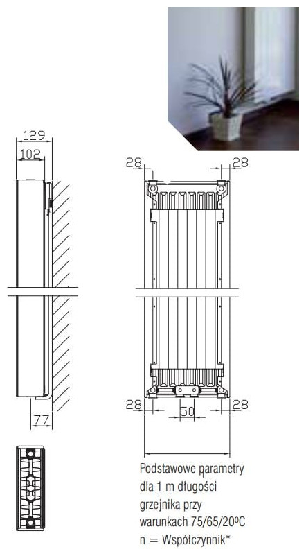 Standardowo grzejniki wyposażone są w komplet zamocowań, korek i odpowietrznik