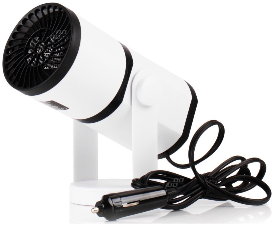 Nagrzewnica samochodowa, odmrażacz szyby, wentylator. Produkt posiada funkcje ciepłego i zimnego powietrza.. Przystosowany do zasilania z gniazda zapalniczki o napięcie 12 V. Do wyboru funkcji służy przełącznik umieszczony na obudowie. Regulowany uchwyt mocujący na taśmę klejącą. SPECYFIKACJA: Napięcie: 12 V DC Max. prąd: 13A Max. moc: 150W Długość kabla: 1,5 m Materiał: ABS