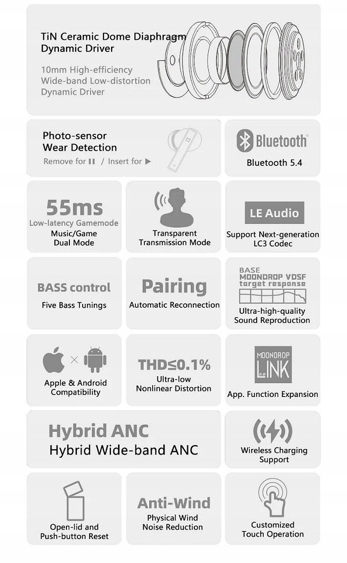 Moondrop Moca - grey - Ακουστικά IEM TWS με ANC