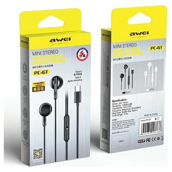 Ακουστικά Awei Awei Ακουστικά Στερεοφωνικά Pc-6T Usb-C Μαύρο/Black