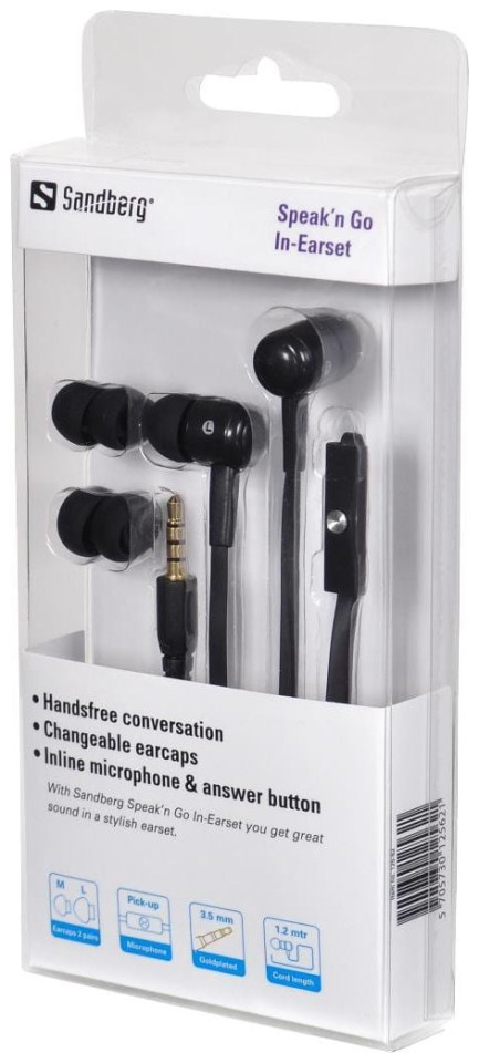 Τα in-ear ακουστικά Sandberg Speak'n Go προσφέρουν εξαιρετικό ήχο. Το καλώδιο είναι εξοπλισμένο με μικρόφωνο και κουμπί για την απάντηση σε εισερχόμενες κλήσεις Τεχνικές προδιαγραφές Μήκος καλωδίου: 1,2 μέτρα Σύνδεση: 3,5 mm βύσμα MiniJack, 4 πόλοι Ακουστικό: Μονάδα οδήγησης: 10 mm Εύρος συχνότητας: 20 Hz - 20 kHz Αντίσταση: 23 Ohmpe. κατευθυντικός συμπυκνωτής Περιεχόμενα συσκευασίας1 Sandberg Speak'n Go In-Earset2 ζεύγη αλλαγών ακουστικών{Ελάχ. απόκριση συχνότητας} 20 Hz . {Ελάχ. απόκριση συχνότητας} 20 Hz . {Στοιχείο χρώματος} Μαύρο . {Στοιχείο χρώματος} Μαύρο . {Έλεγχος έντασης ήχου} Αρ. {Έλεγχος έντασης ήχου} Αρ. {Καλωδιακό τηλεχειριστήριο} Ναι. {Καλωδιακό τηλεχειριστήριο} Ναι. {Connector} Mini Jack 3,5 mm. {Connector} Mini Jack 3,5 mm. {Ενσωματωμένο μικρόφωνο} Ναι. {Ενσωματωμένο μικρόφωνο} Ναι. {Μέγ. απόκριση συχνότητας} 20000 Hz . {Μέγ. απόκριση συχνότητας} 20000 Hz . {Βάρος [g]} 8 . {Βάρος [g]} 8 . {Μήκος καλωδίου} 1,2 m. {Μήκος καλωδίου} 1,2 m. {Μέθοδος διόρθωσης} Χωρίς τοποθέτηση. {Μέθοδος διόρθωσης} Χωρίς τοποθέτηση. {Περιλαμβάνεται θήκη} Αρ. {Περιλαμβάνεται θήκη} Αρ. {Active Noise Cancellation ANC} Αρ. {Active Noise Cancellation ANC} Αρ. {Αδιάβροχο} Όχι. {Αδιάβροχο} Όχι. {Sensitivity} Δεν υπάρχουν διαθέσιμα δεδομένα. {Sensitivity} Δεν υπάρχουν διαθέσιμα δεδομένα