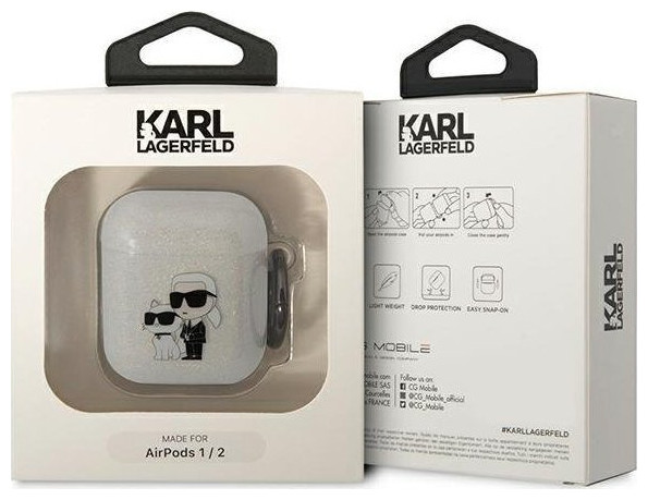 Μοντέρνα και κομψή θήκη Karl Lagerfeld από τη συλλογή Glitter Karl&Choupette για τα ακουστικά AirPods 1ης και 2ης γενιάς.