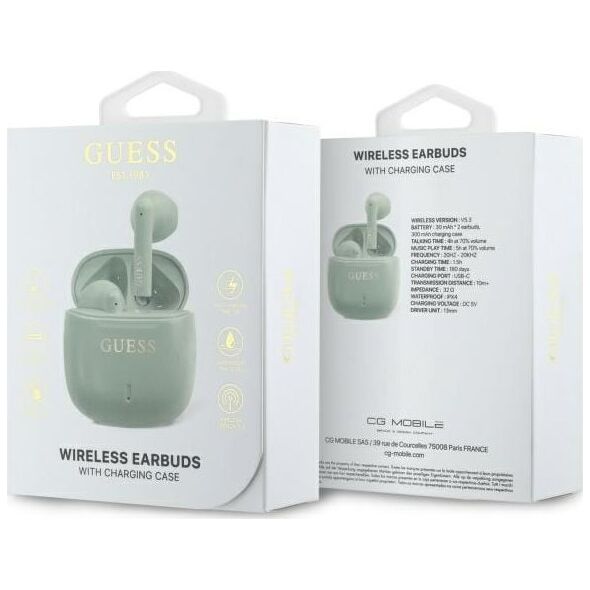 Ακουστικά Guess Guess Bluetooth GUTWSJ14ESGN TWS + βάση φόρτισης πράσινο/πράσινο Printed Classic Logo